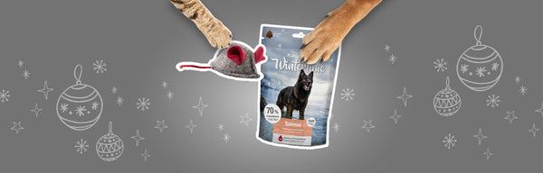Decembrska darila za pse in mačke pri PLATINUM: brezplačen koledar pri naročilu nad 10 €, miška igrača ali pasji priboljški nad 20 €. Naravna hrana, pravo veselje.