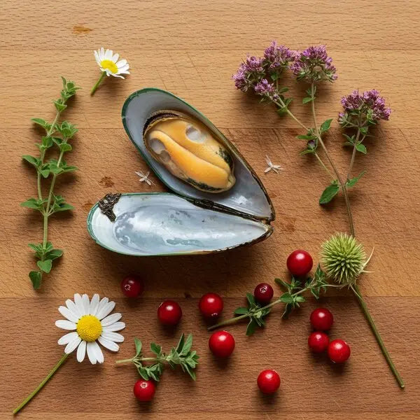 Izvleček zelenoustih školjk je naravni vir glukozamina za zdrave sklepe. Alge in izbrane zelišča (kamiliсa, origano, pegasti badelj, brusnice) vsebujejo antioksidante, vitamine in minerale, ki podpirajo imunski sistem in prožno delovanje organov.
